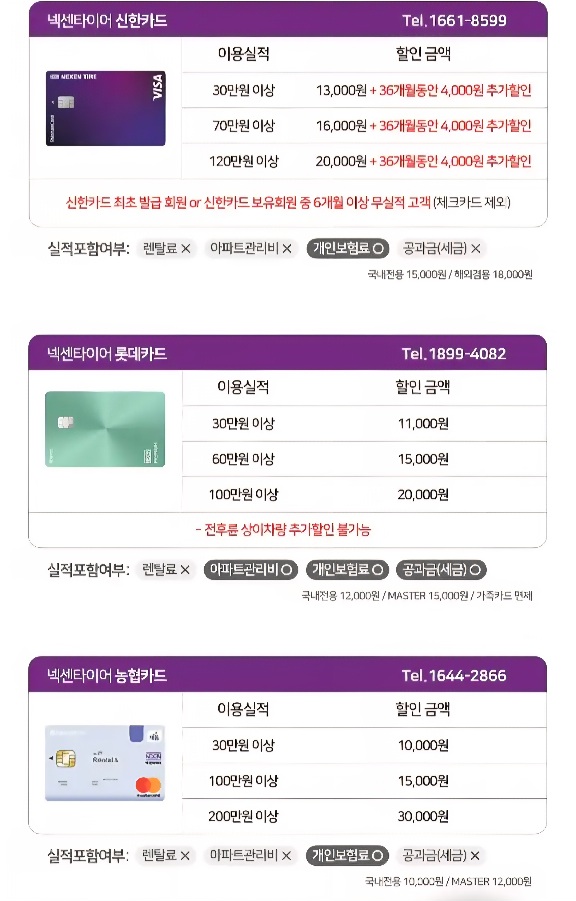 차량이 클수록 고급차량일수록, 한 번에 4개 타이어를 한 번에 교체하는 비용은 좀 부담이 되는게 사실인데. 월납 방식에다가 제휴카드 사용 시 추가 할인까지 가능하니, 전략을 잘 세우면 이득이겠다 싶었습니다. (저도 보유차량이 SUV 차량이고 4개를 한 번에 교체할 시기라서 금액부담이 좀 되는 상황이었어요.)